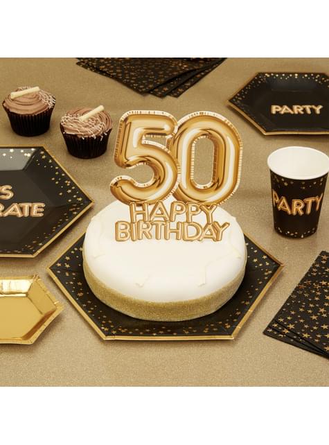 Dortová dekorace "Happy Birthday 50" zlatá - Glitz & Glamour Black & Gold