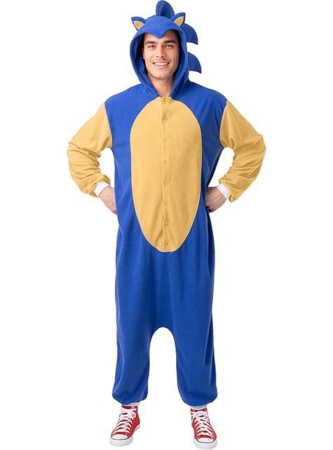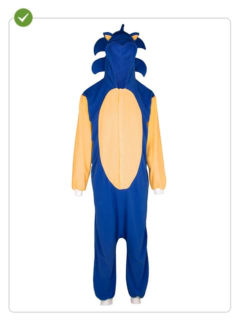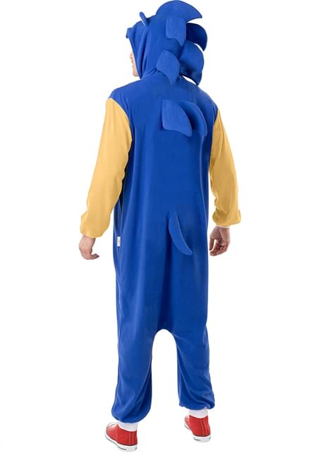 Modrý overal s kapucí je vyroben z 100% polyesteru a má volný, měkký a lehký design, ideální pro volný pohyb. Přední část v béžové barvě reprodukuje typické břicho postavy, zatímco integrovaná kapuce zahrnuje uši, výšivku očí a trojrozměrné bodce na zádech, což dokonale zreprodukuje originálního Sonica. Přední zapínání na knoflíky a elastické manžety na rukávech a spodním lemu zajišťují pohodlné a praktické uchycení po celou dobu oslavy.
