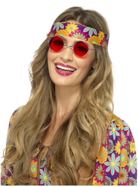 Červené kulaté hipísácké brýle pro dospělé