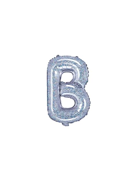Fóliový balónek ve tvaru písmene B ve třpytivé stříbrné barvě