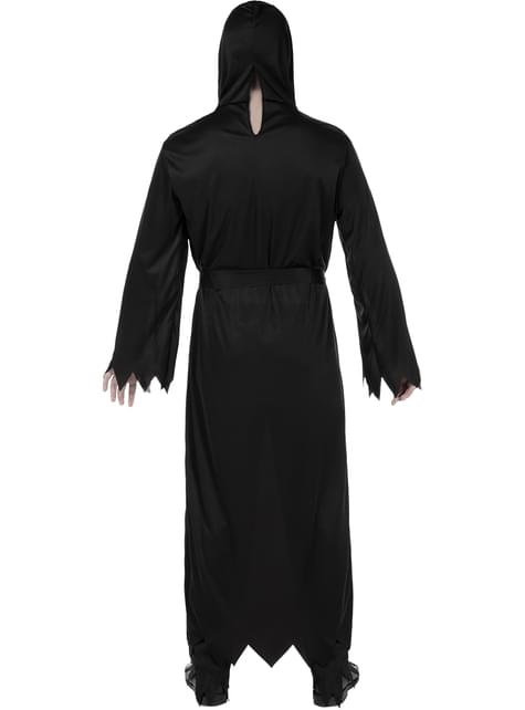Sada obsahuje dlouhý černý rouch s integrovanou širokou kapucí a nepravidelným lemem, nastavovací pás ze stejného materiálu a odnímatelnou kosu o délce 120 cm s stříbrnou čepelí a červenými detaily napodobujícími krev. Vyrobeno ze 100% polyesteru a odolného polystyrenu, kombinuje lehkost a trvanlivost, aby vás doprovázelo celou noc s temným a tajemným nádechem.
