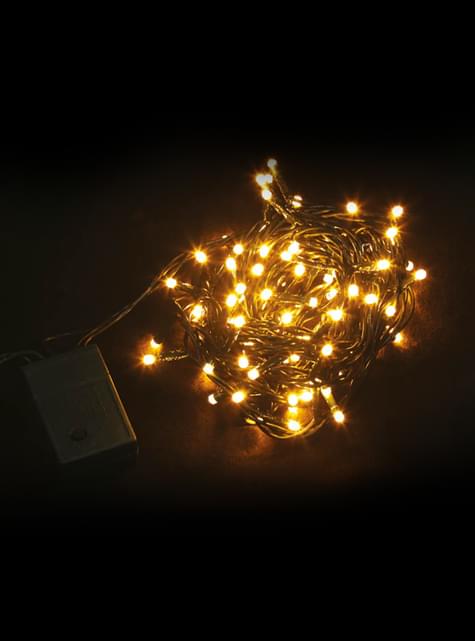 Obsahuje: 6.5 m světla na šňůře se 100 LED světly teplá bílá a ovladačem na 8 funkcí. Se šňůrou na 220V.
