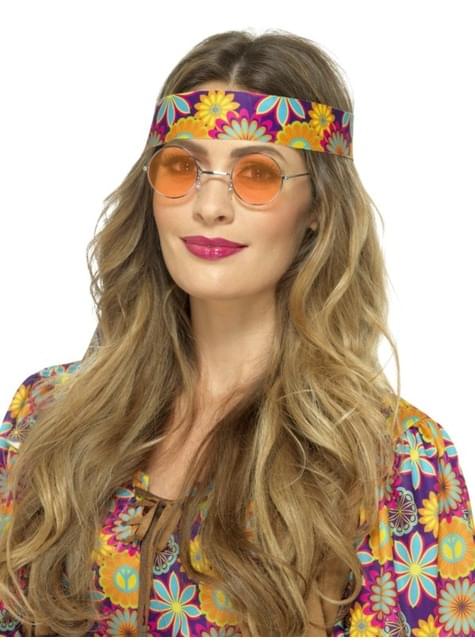 Oranžové kulaté hipísácké brýle pro dospělé
