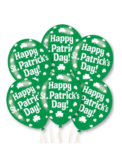 Sada 6 zelených latexových balonků St Patrick's Day