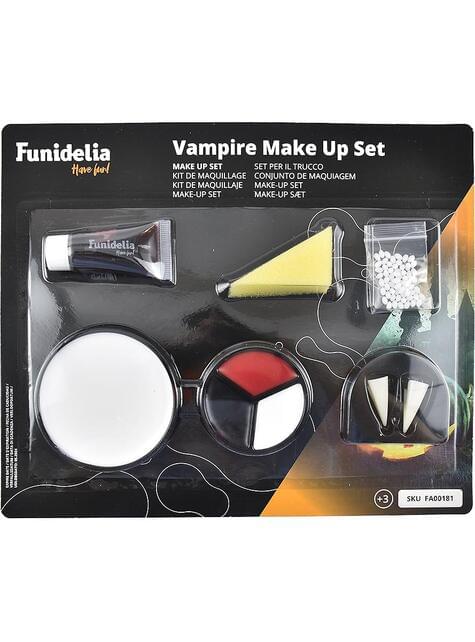 Obsahuje bílý základ, paletu tří barev (bílá, červená a černá), zuby s lepidlem, tubu falešné krve a aplikátorovou houbu pro dosažení dokonalého vzhledu. Textura make-upu se snadno roztírá a nabízí dobré krytí, ideální pro ty, kteří chtějí realistický efekt bez komplikací. Navíc zuby a krev dodávají konečný dotek pro dosažení úplné transformace, od elegantního klasického upíra po divočejší bytost.