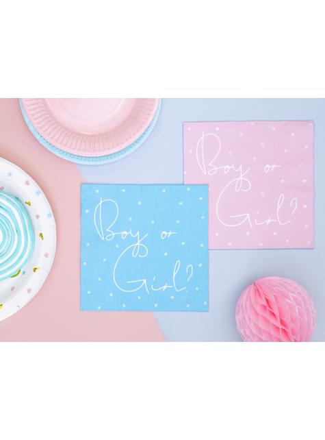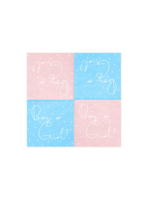Set 20 růžových & modrých papírových ubrousků "Boy Or Girl“ - Gender Reveal Party
