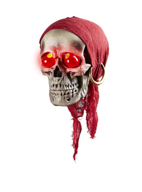 Závěsná dekorace pirátská lebka s šátkem a červenýma očima